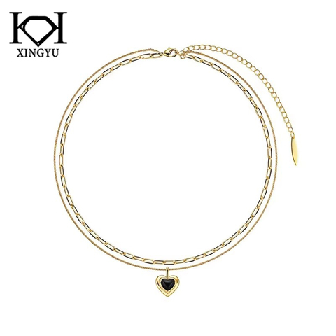 18K金メッキ真鍮リンクチェーン女性用チャームネックレスダブルレイヤー積み重ねハート型ジルコンストーン流行のデザイン