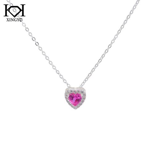 S925シルバーハートネックレス女性用ピンクグリーンブルー愛高級ジルコンジュエリーロジウムメッキ結婚式